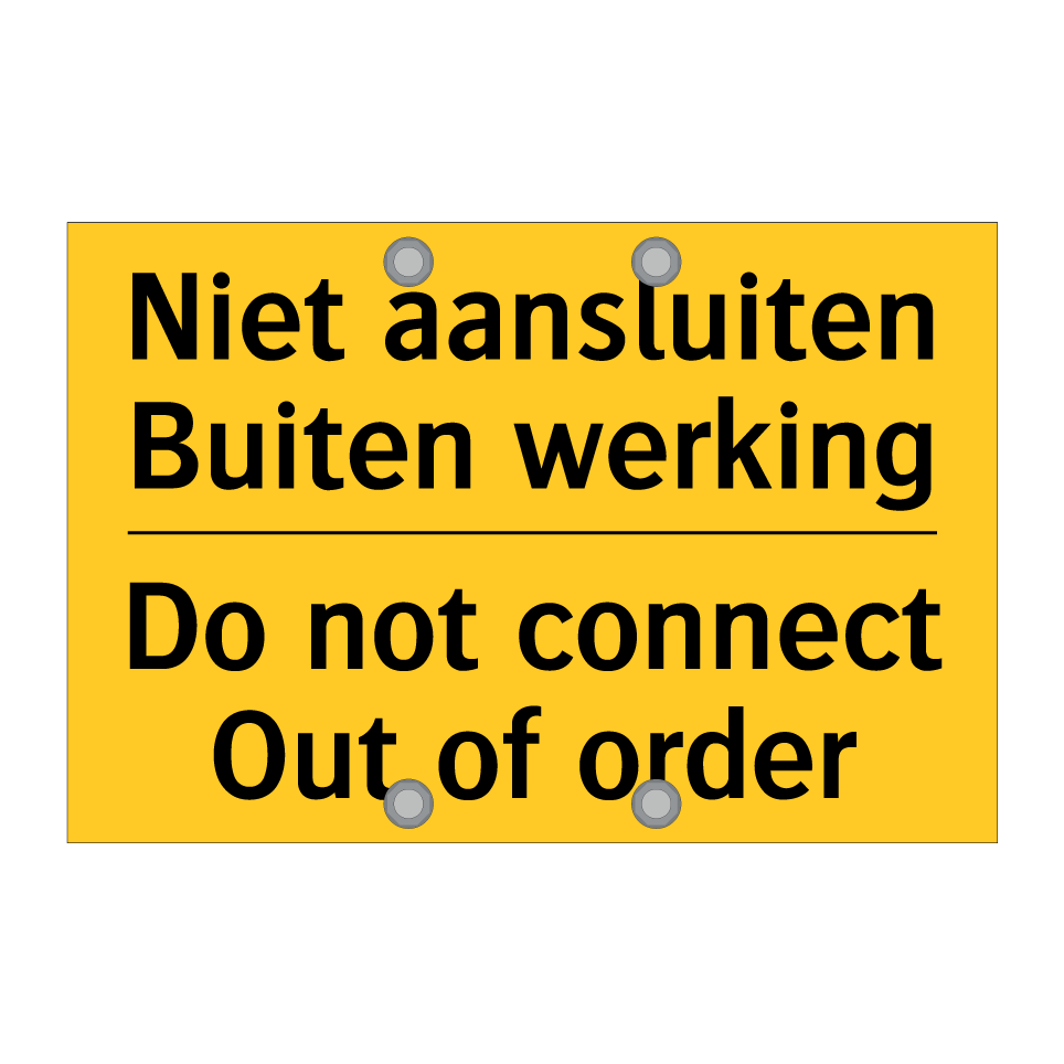 Waarschuwingsbord met de tekst Niet aansluiten Buiten werking / Do not connect Out of order