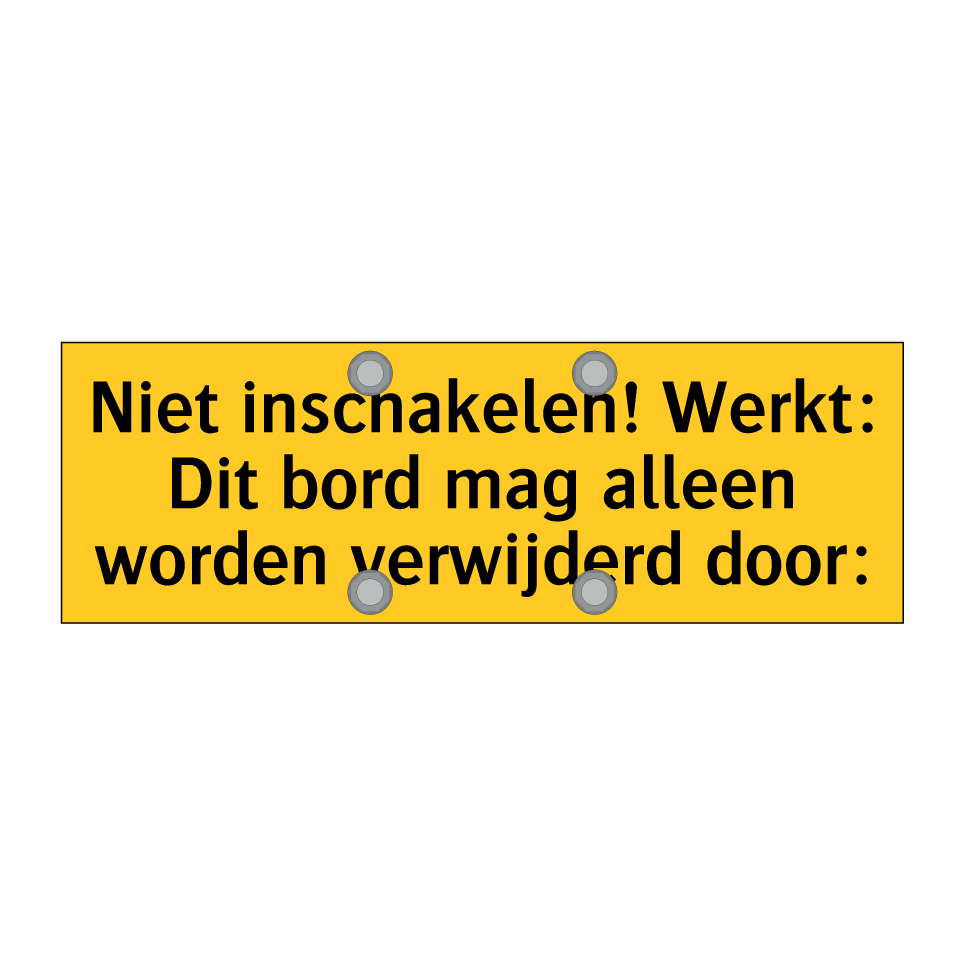 Waarschuwingsbord met de tekst Niet inschakelen! Werkt: dit bordje mag alleen worden verwijderd door: