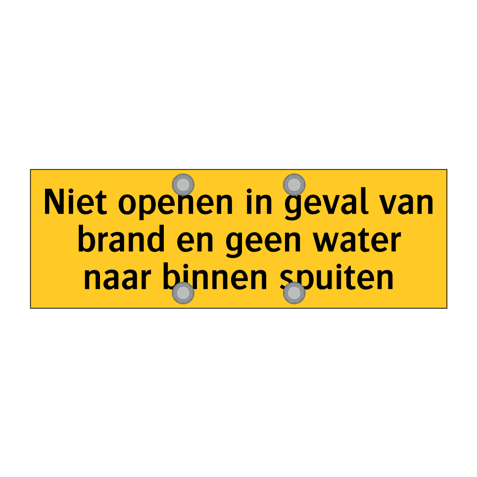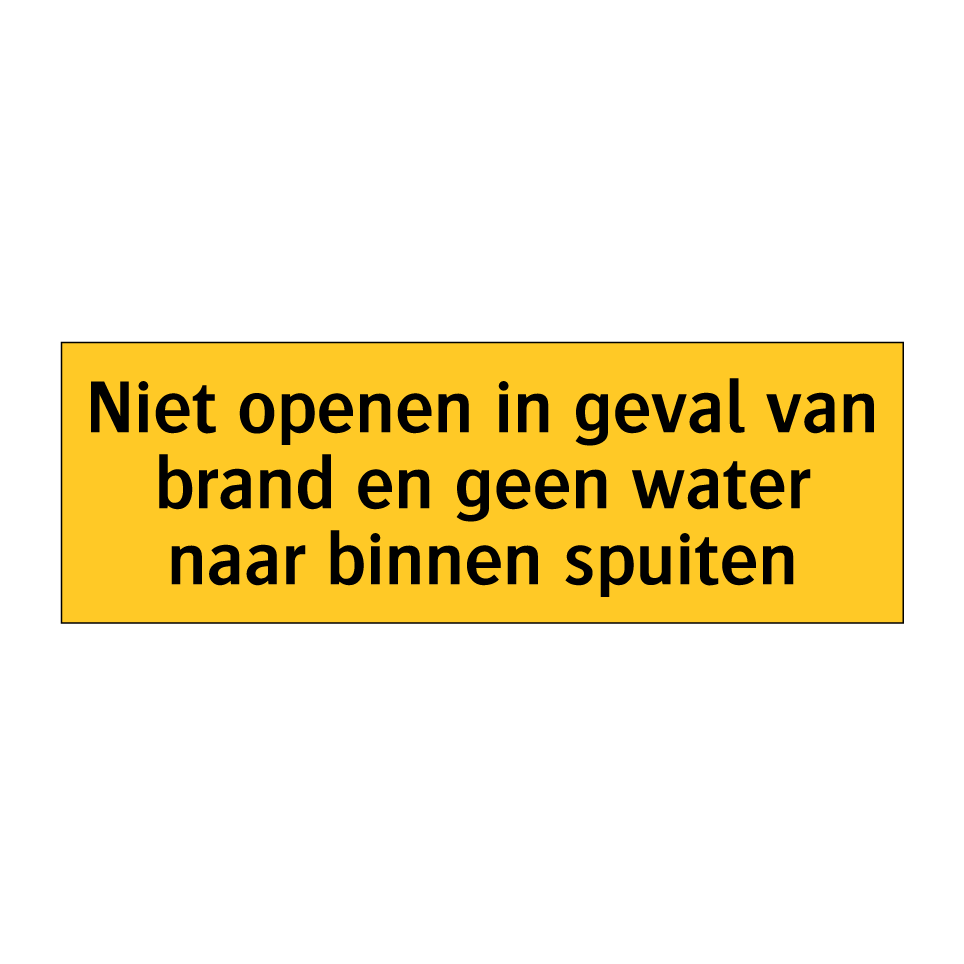 Waarschuwingsbord met de tekst Niet openen in geval van brand en geen water naar binnen spuiten