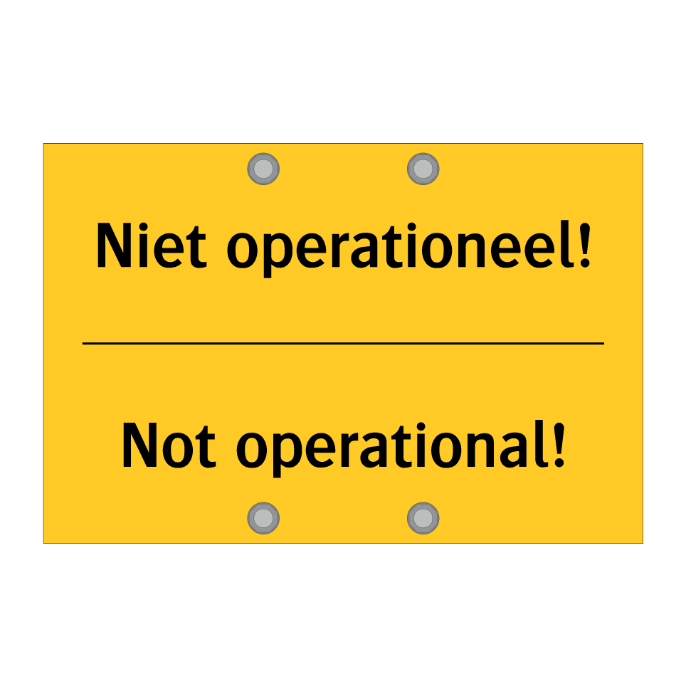 Waarschuwingsbord met de tekst Niet operationeel! / Not operational!