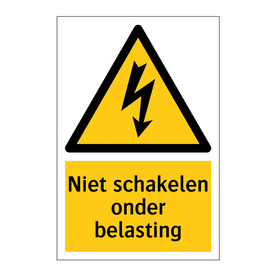 Waarschuwingsbord met de tekst Niet schakelen onder belasting