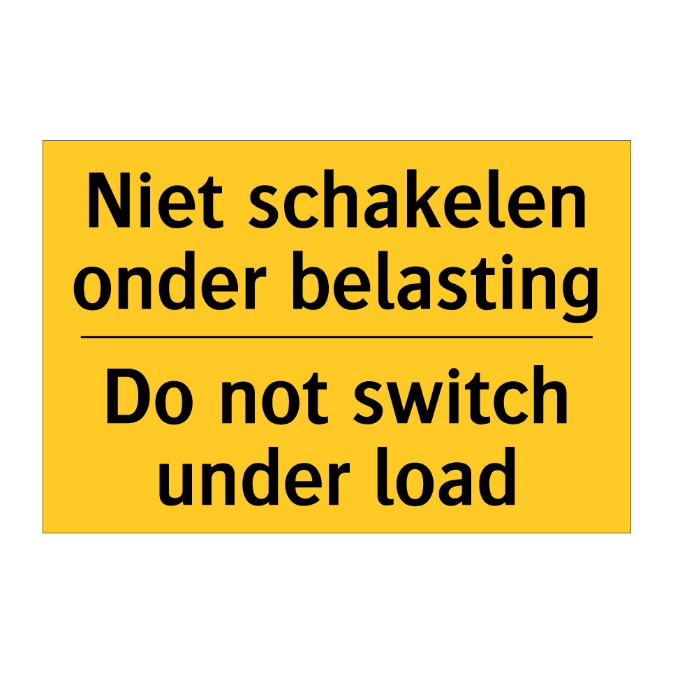 Waarschuwingsbord met de tekst Niet schakelen onder belasting / Do not switch under load