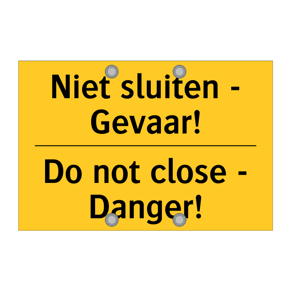 Waarschuwingsbord met de tekst Niet sluiten - Gevaar! / Do not close - Danger!