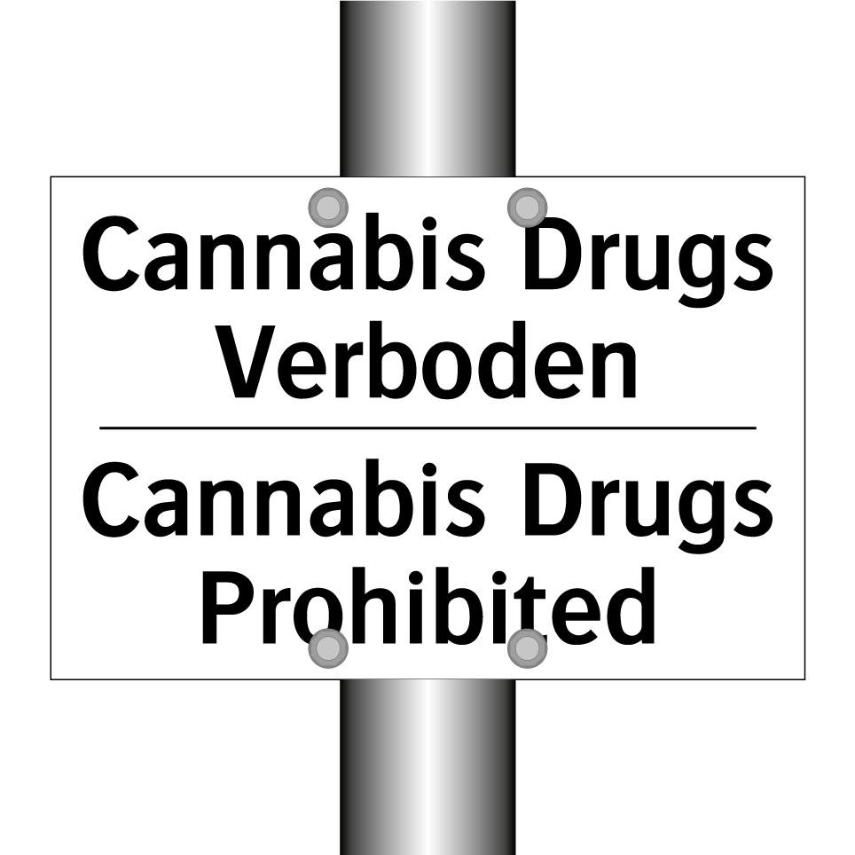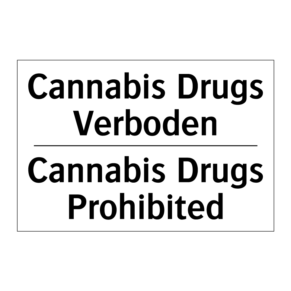 Verbodsbord met de tekst Cannabis Drugs Verboden en in het Engels: Cannabis Drugs Prohibited