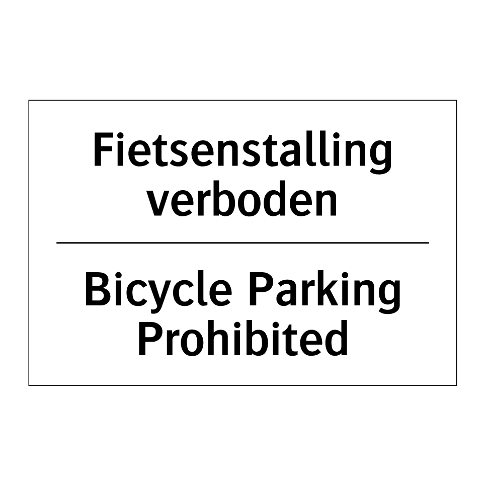 Verbodsbord met de tekst Fietsenstalling verboden en in het Engels: Bicycle Parking Prohibited