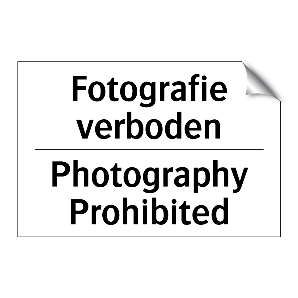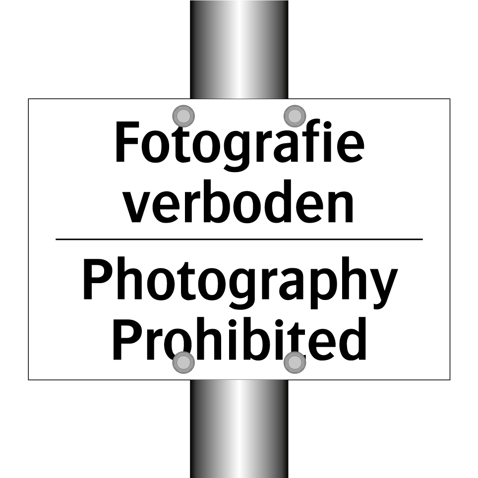 Verbodsbord met de tekst Fotografie verboden en in het Engels: Photography Prohibited