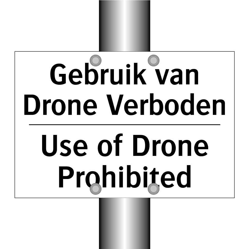 Verbodsbord met de tekst Gebruik van Drone Verboden en in het Engels: Use of Drone Prohibited