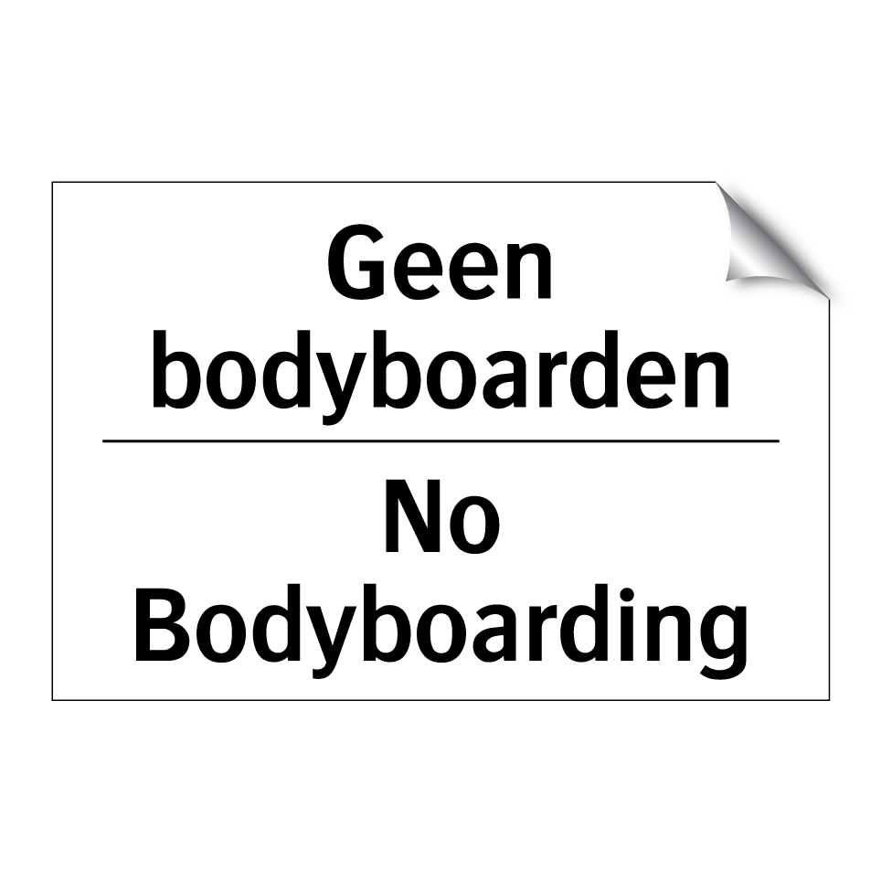 Verbodsbord met de tekst Geen bodyboarden en in het Engels: No Bodyboarding