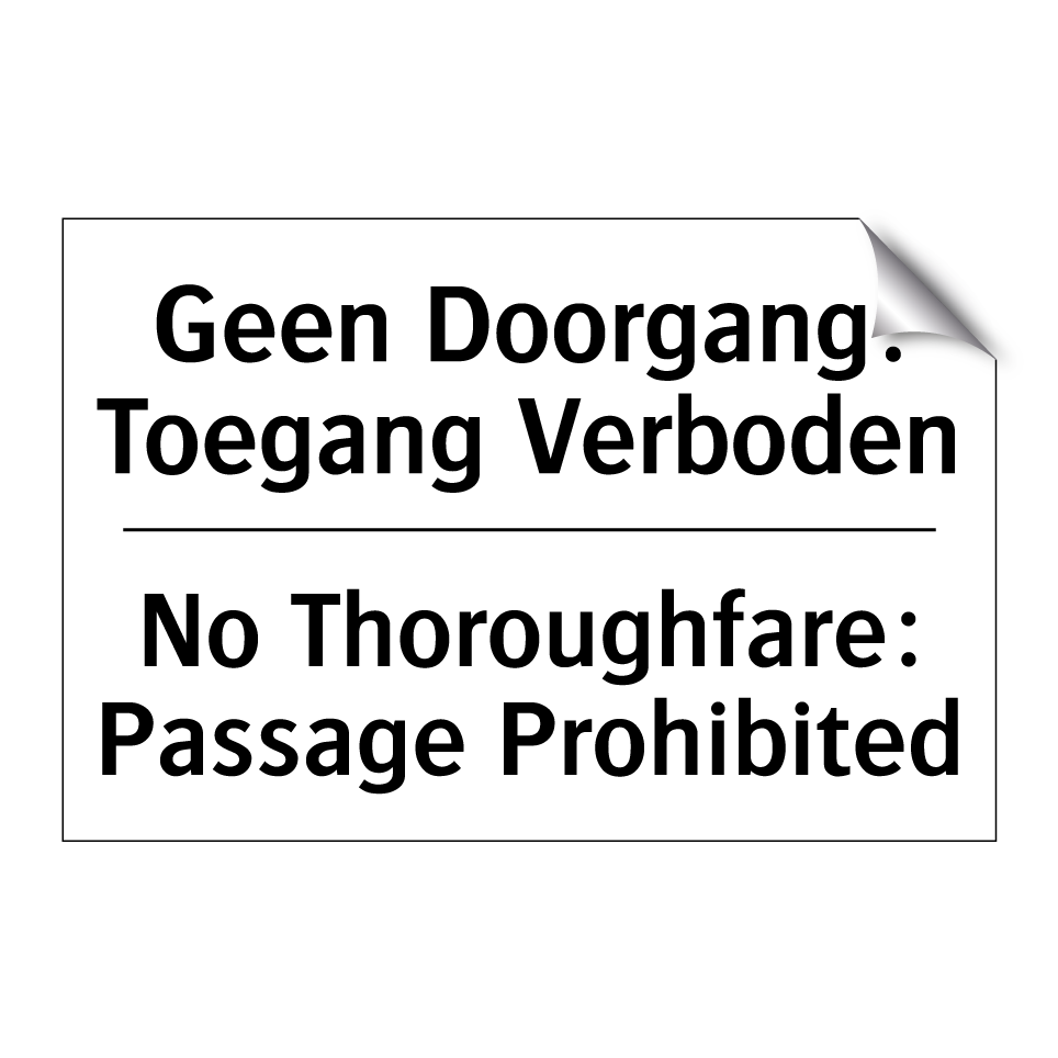 Verbodsbord met de tekst Geen Doorgang: Toegang Verboden en in het Engels: No Thoroughfare: Passage Prohibited