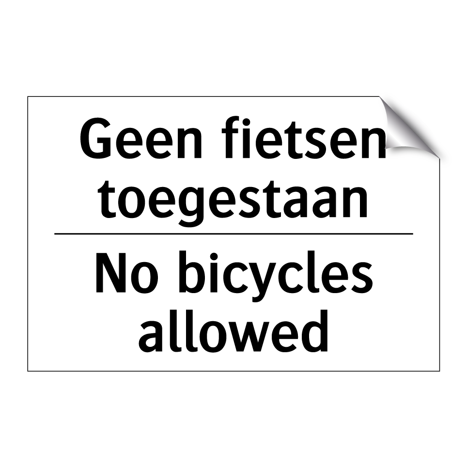 Verbodsbord met de tekst Geen fietsen toegestaan en in het Engels: No bicycles allowed