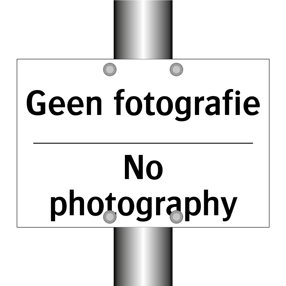 Verbodsbord met de tekst Geen fotografie en in het Engels: No photography