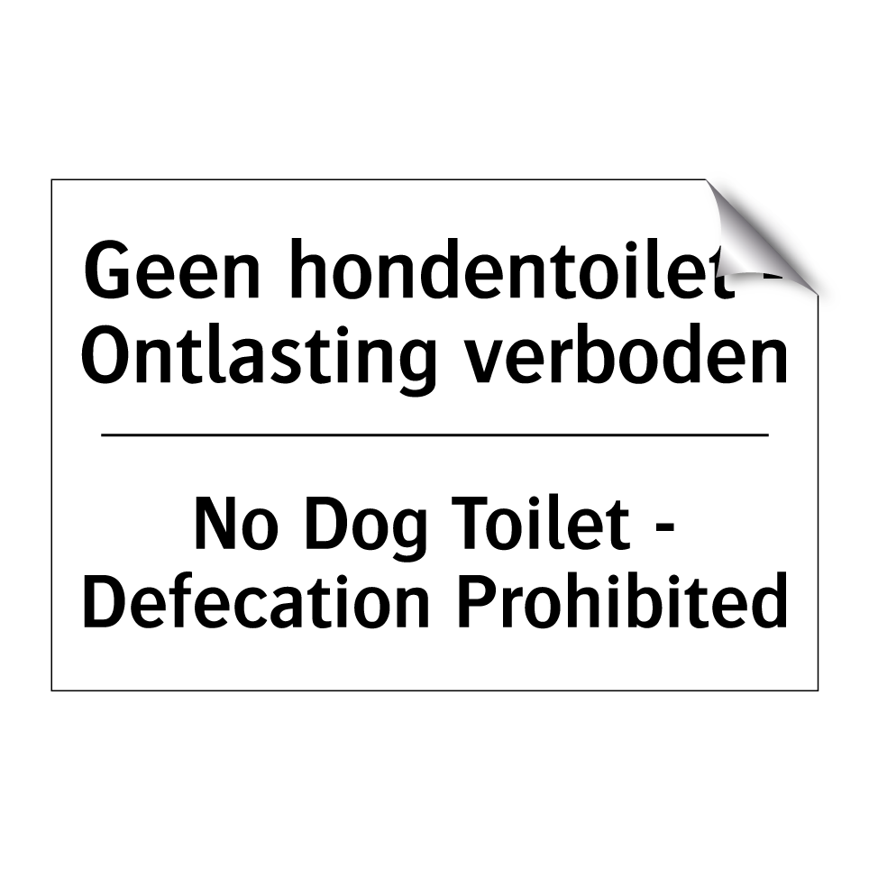 Verbodsbord met de tekst Geen hondentoilet - Ontlasting verboden en in het Engels: No Dog Toilet - Defecation Prohibited