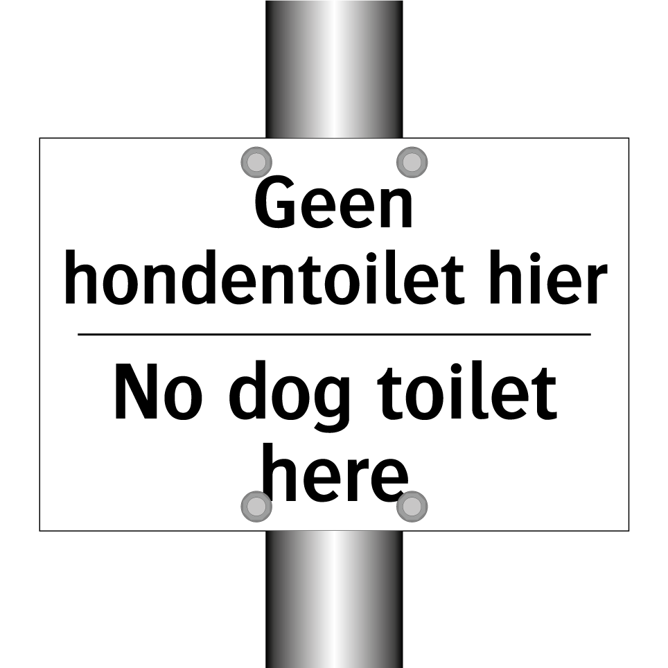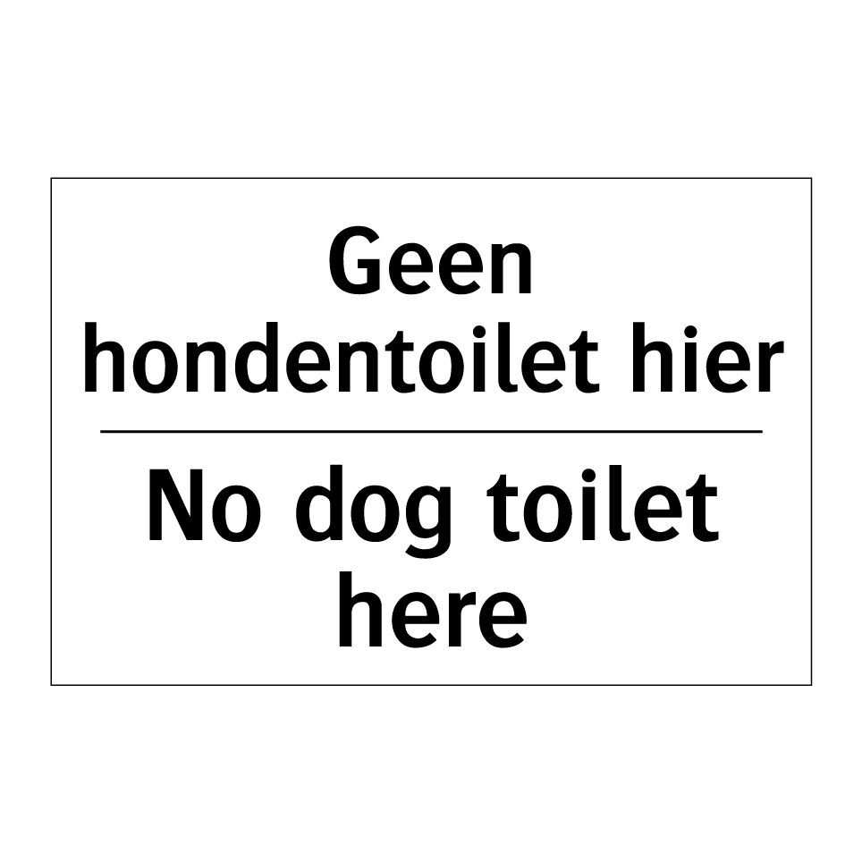 Verbodsbord met de tekst Geen hondentoilet hier en in het Engels: No dog toilet here