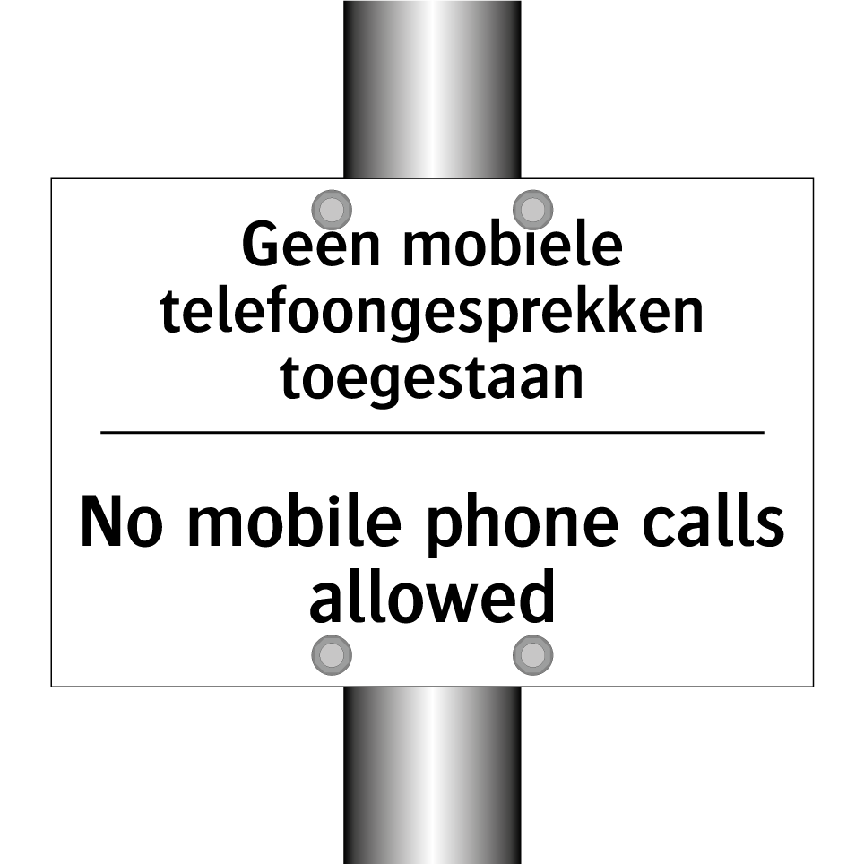 Verbodsbord met de tekst Geen mobiele telefoongesprekken toegestaan en in het Engels: No mobile phone calls allowed