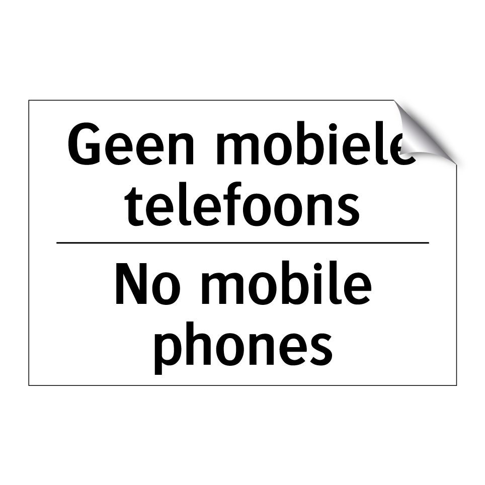 Verbodsbord met de tekst Geen mobiele telefoons en in het Engels: No mobile phones
