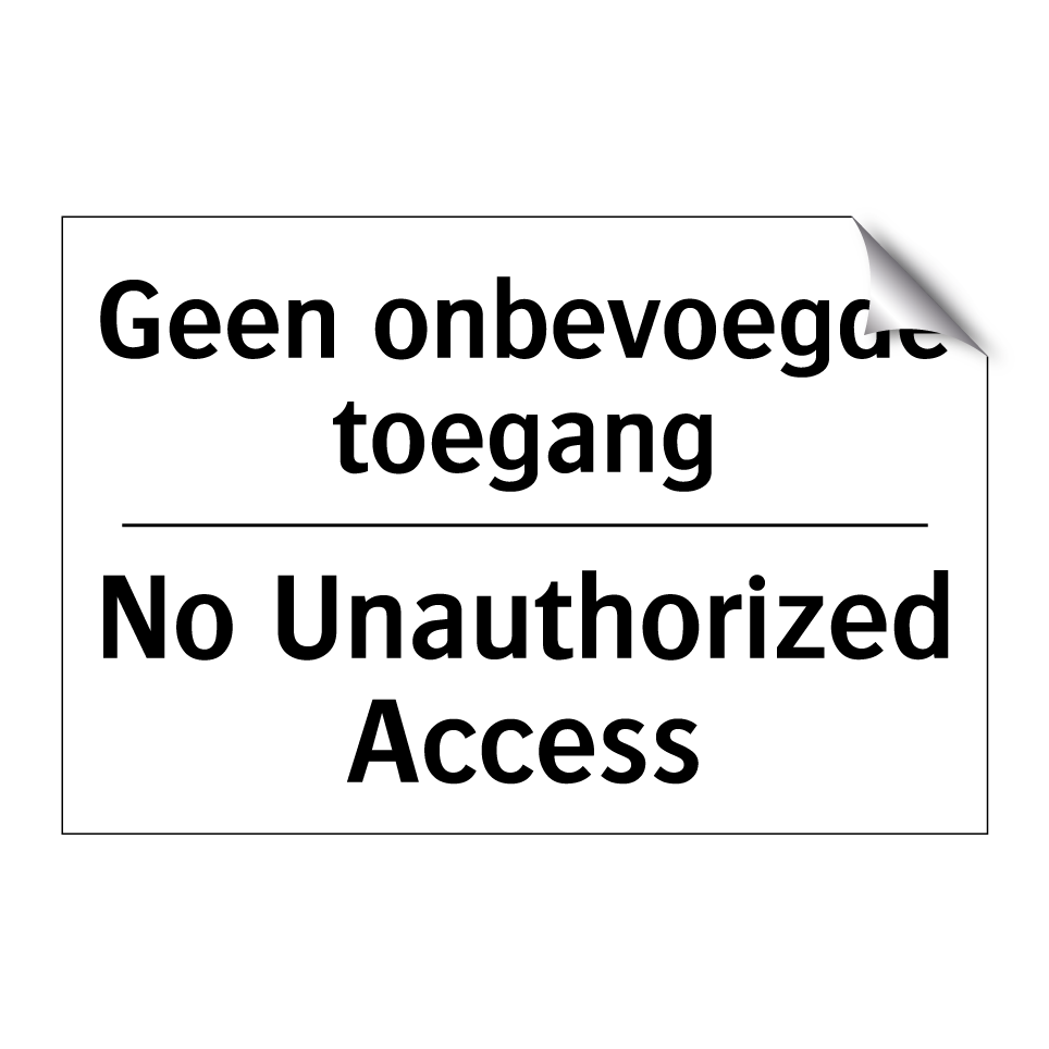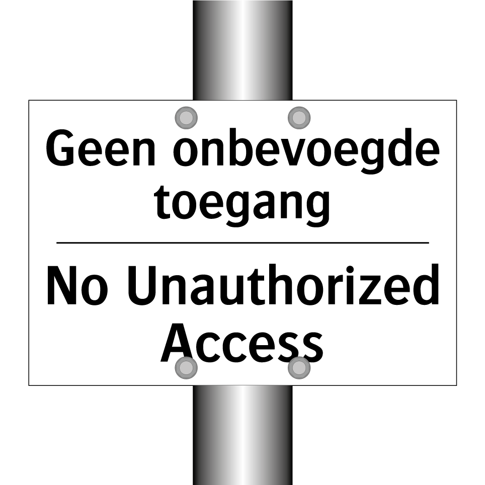 Verbodsbord met de tekst Geen onbevoegde toegang en in het Engels: No Unauthorized Access