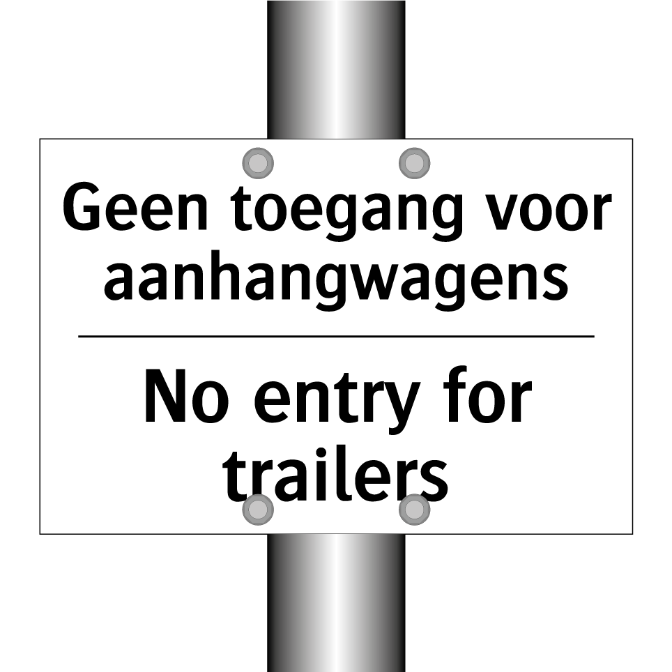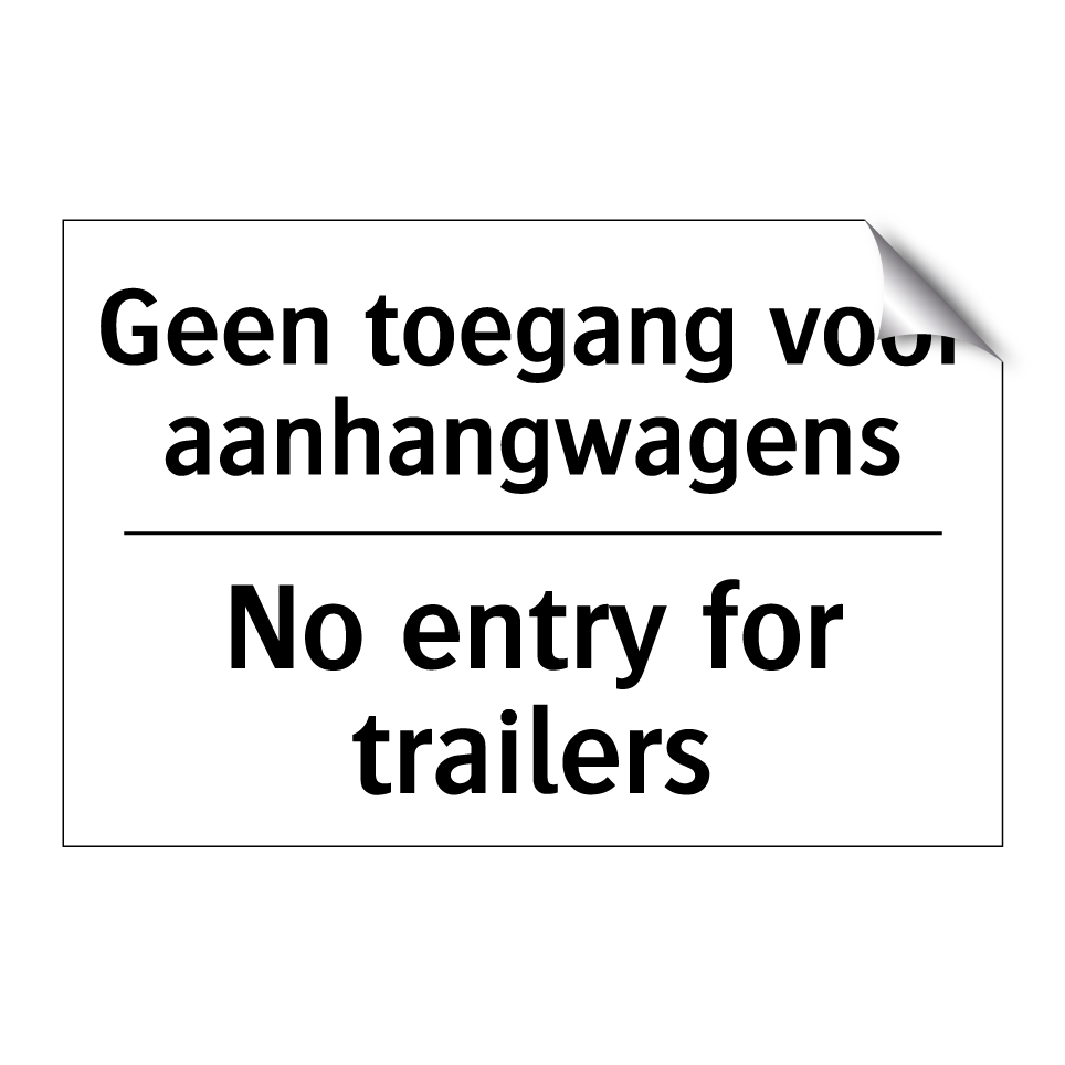 Verbodsbord met de tekst Geen toegang voor aanhangwagens en in het Engels: No entry for trailers