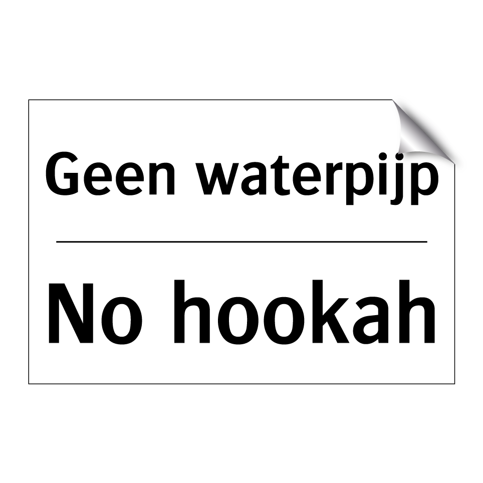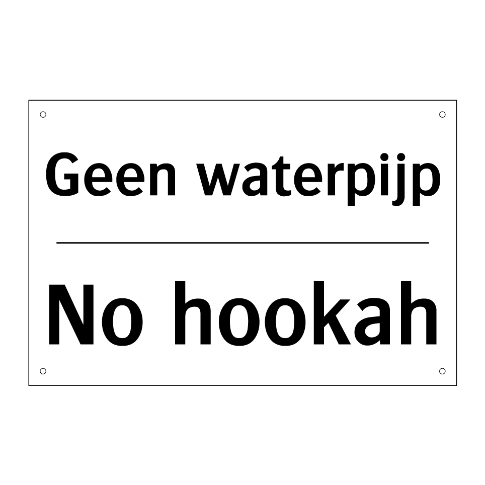 Verbodsbord met de tekst Geen waterpijp en in het Engels: No hookah