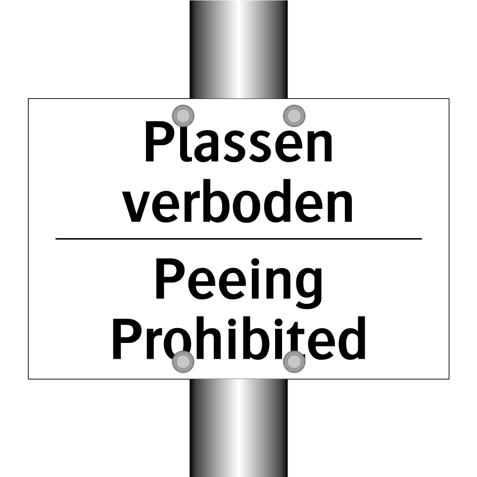 Verbodsbord met de tekst Plassen verboden en in het Engels: Peeing Prohibited