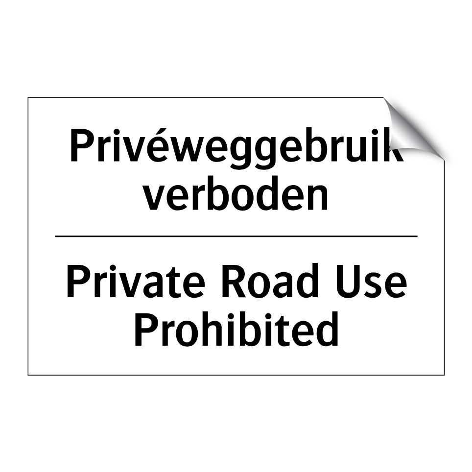 Verbodsbord met de tekst Privéweggebruik verboden en in het Engels: Private Road Use Prohibited