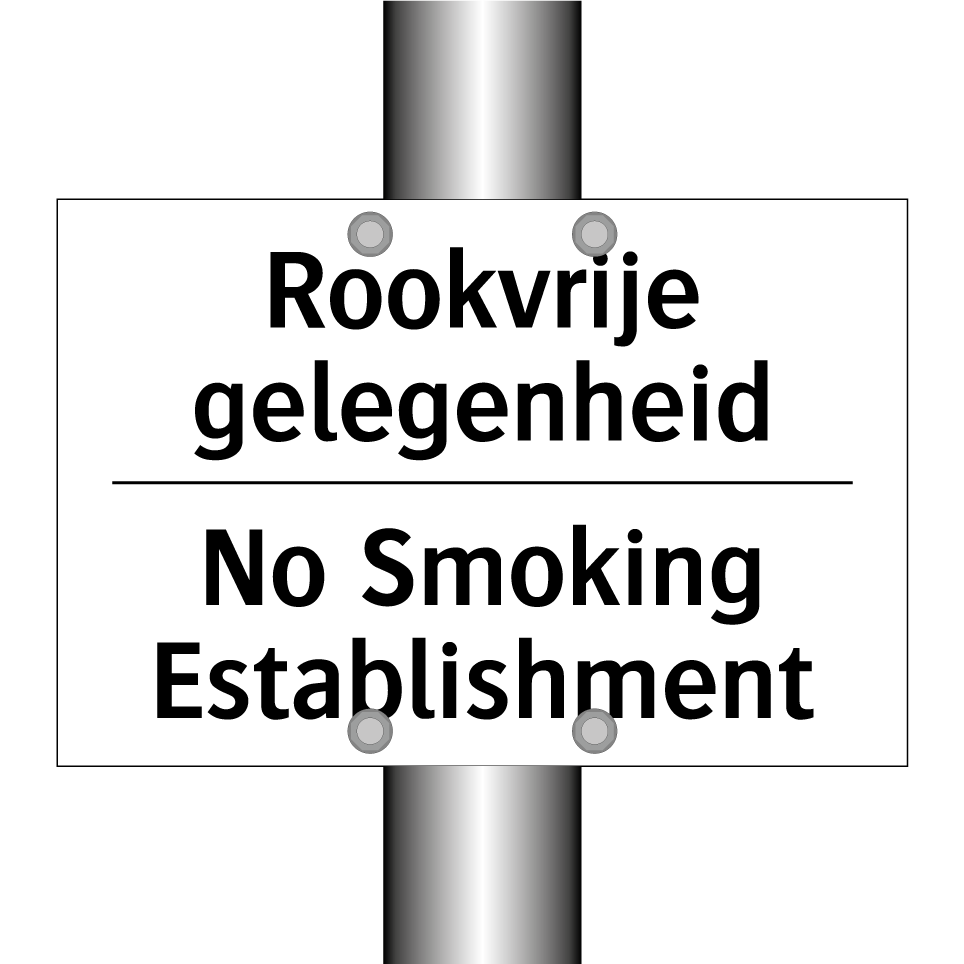 Verbodsbord met de tekst Rookvrije gelegenheid en in het Engels: No Smoking Establishment