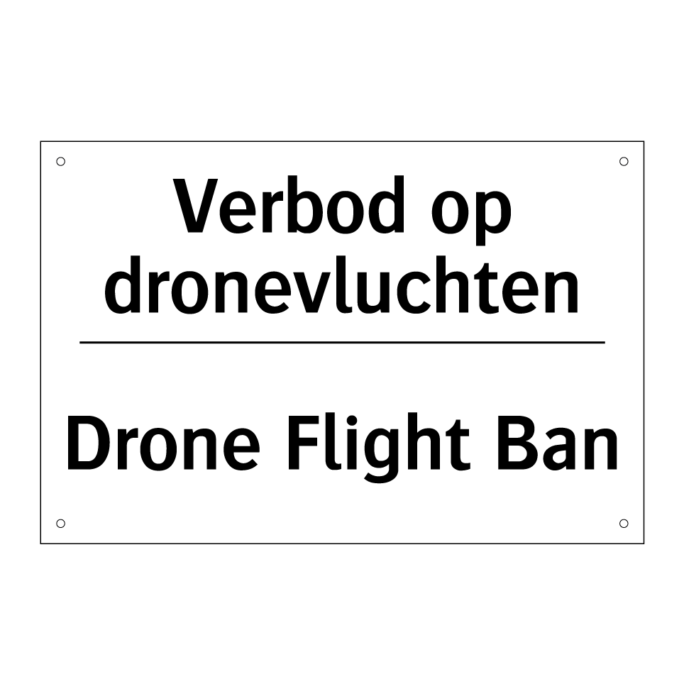 Verbodsbord met de tekst Verbod op dronevluchten en in het Engels: Drone Flight Ban