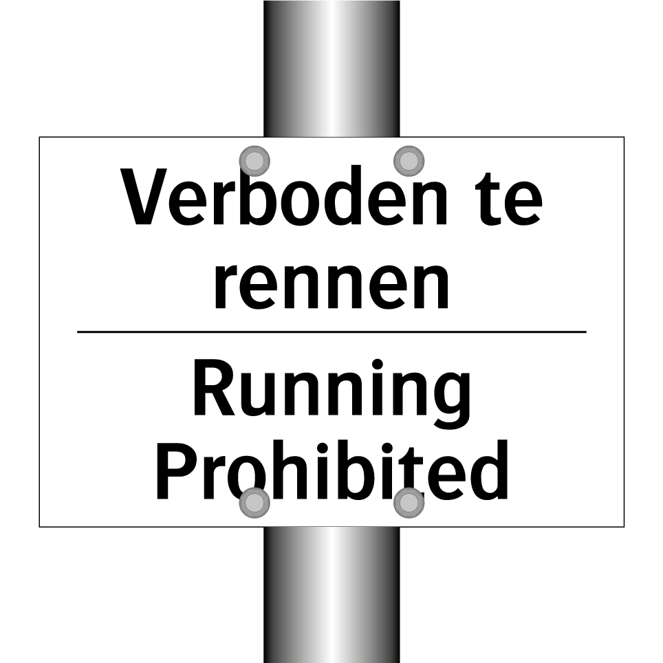 Verbodsbord met de tekst Verboden te rennen en in het Engels: Running Prohibited