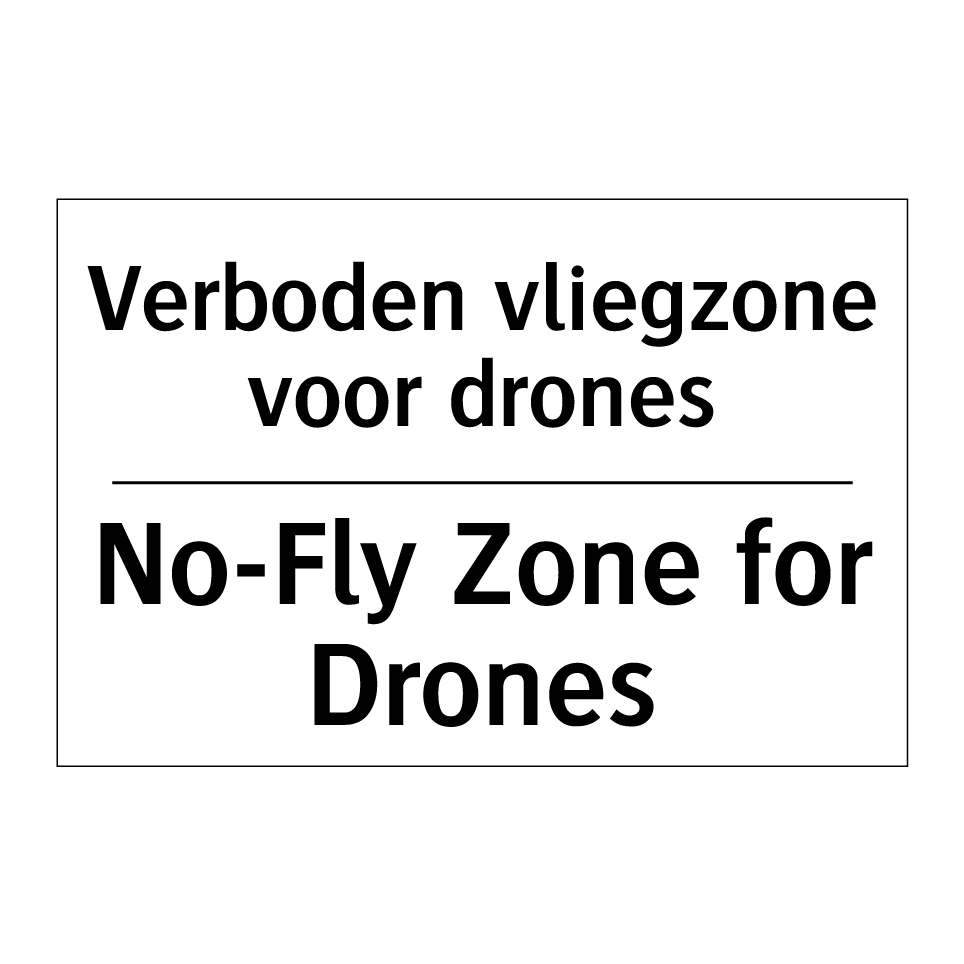Verbodsbord met de tekst Verboden vliegzone voor drones en in het Engels: No-Fly Zone for Drones