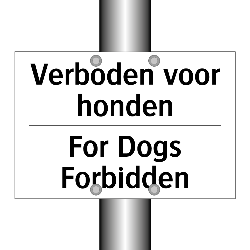 Verbodsbord met de tekst Verboden voor honden en in het Engels: For Dogs Forbidden
