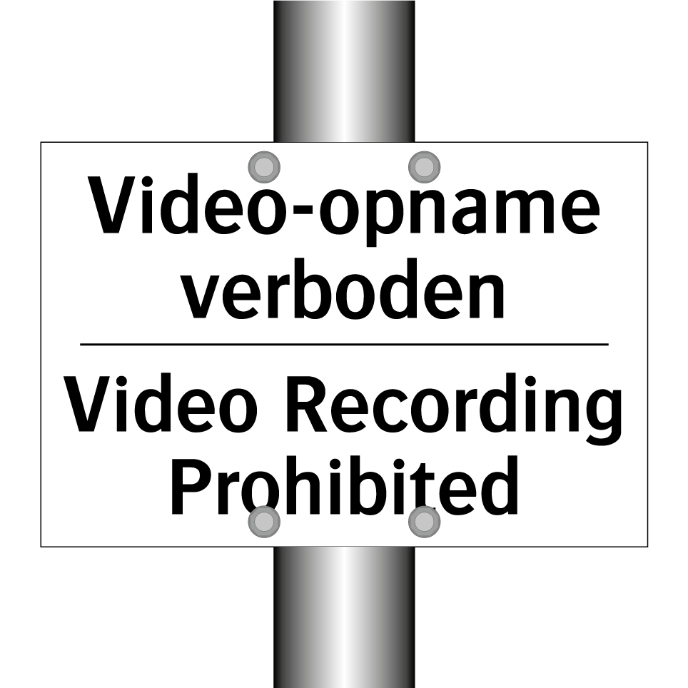 Verbodsbord met de tekst Video-opname verboden en in het Engels: Video Recording Prohibited