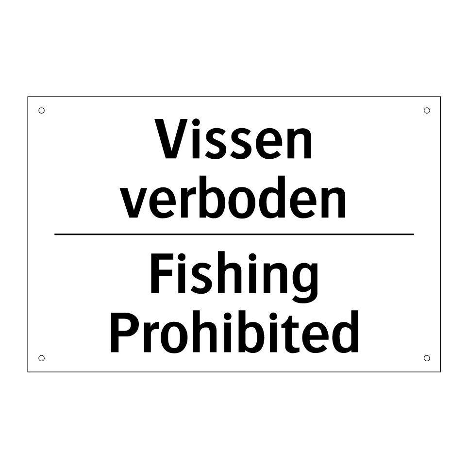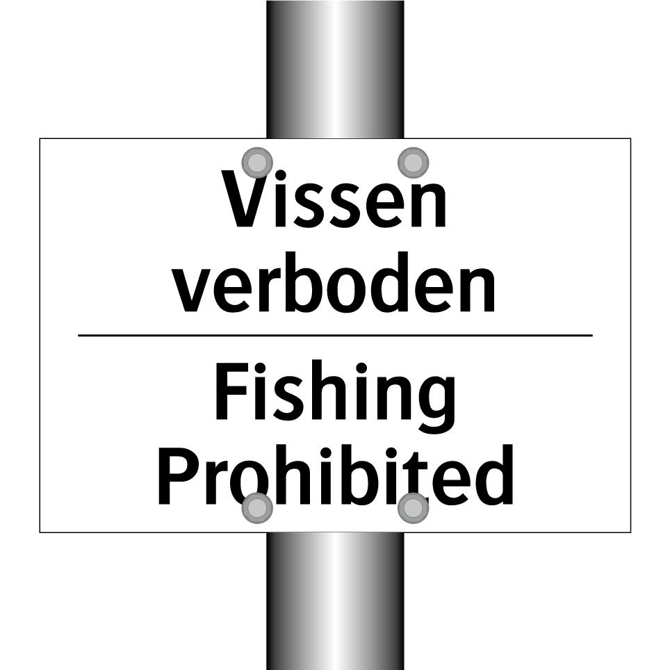 Verbodsbord met de tekst Vissen verboden en in het Engels: Fishing Prohibited