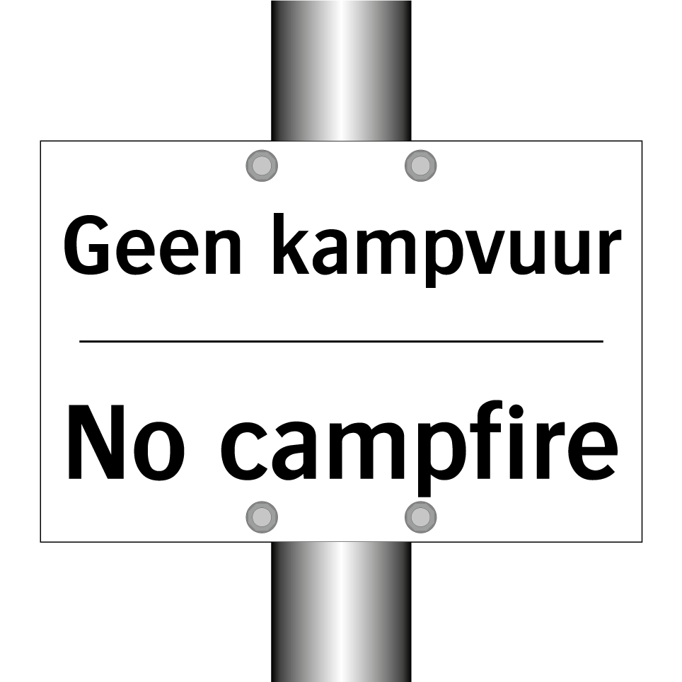 Verbodsbord met de tekst Geen kampvuur en in het Engels: No campfire