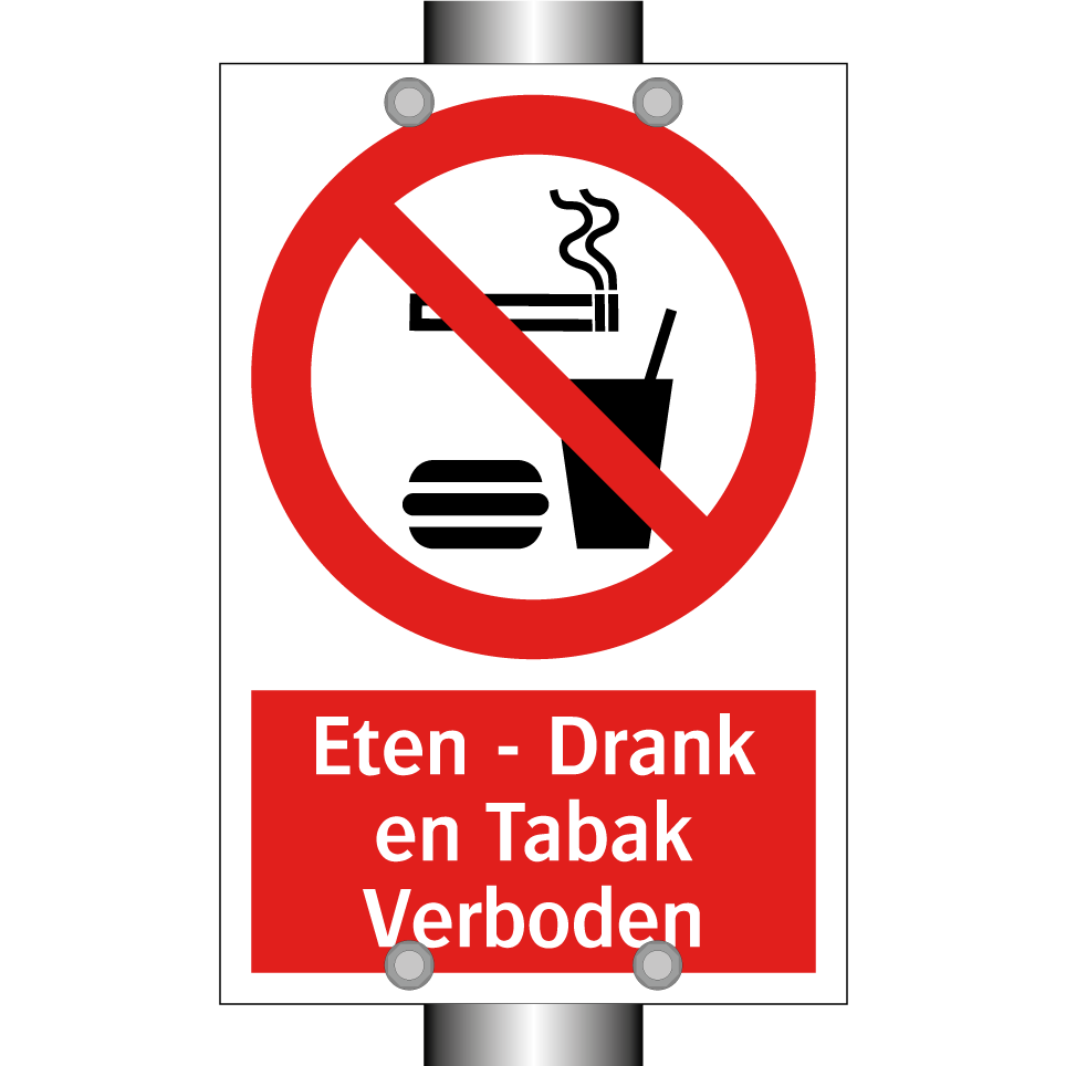 Verbodsbord met de tekst Eten - Drank en Tabak Verboden