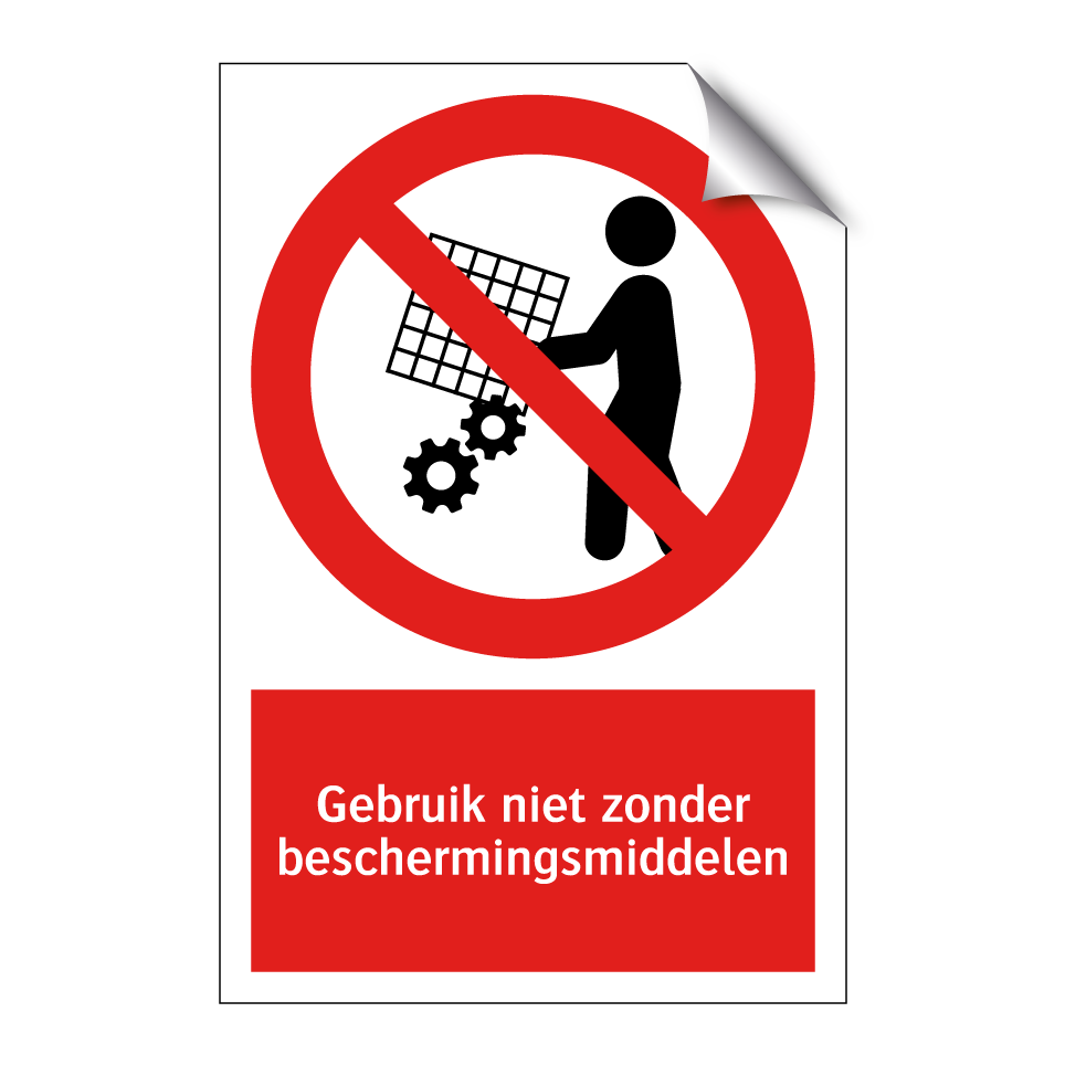 Verbodsbord met de tekst Gebruik niet zonder beschermingsmiddelen