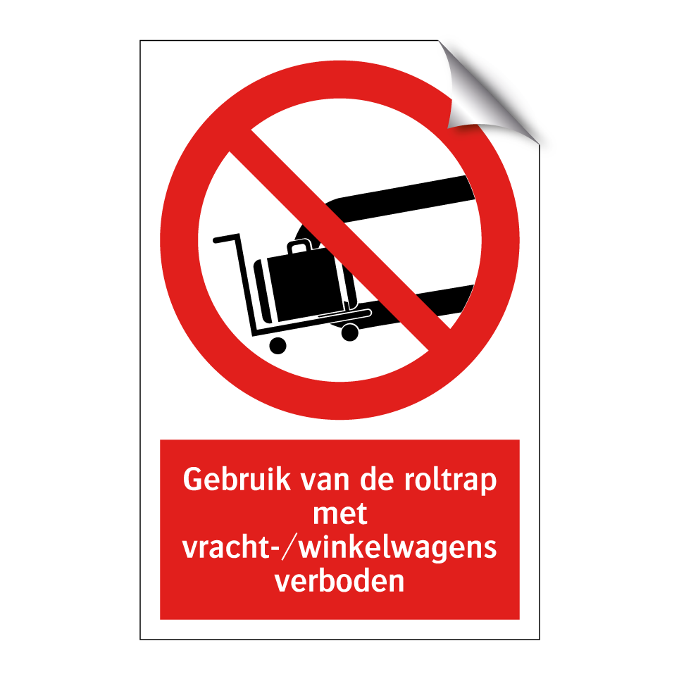 Verbodsbord met de tekst Gebruik van de roltrap met vracht-/winkelwagens verboden