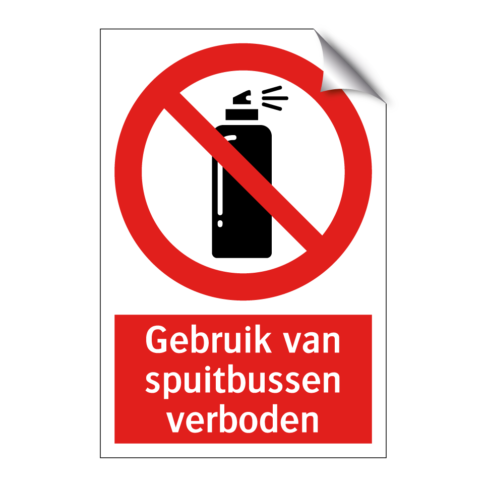 Verbodsbord met de tekst Gebruik van spuitbussen verboden