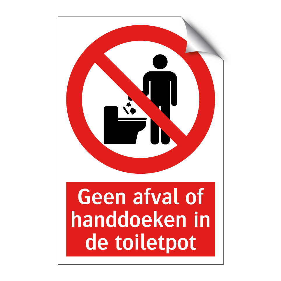 Deze opvallende verbodsbord is essentieel voor het handhaven van hygiëne en netheid in sanitaire ruimtes. Ideaal voor gebruik in openbare toiletten, kantoren, restaurants en andere faciliteiten waar bezoekers worden aangemoedigd om verantwoordelijk om te gaan met afval. Door de duidelijke rode achtergrond en witte tekst trekt het onmiddellijk de aandacht en voorkomt het ongewenst gedrag. Plaats deze bord op een zichtbare plek bij de toiletten om ervoor te zorgen dat de boodschap niet over het hoofd wordt gezien. Het gebruik van een universeel herkenbare symbool versterkt de boodschap en helpt bij het bevorderen van een schone en aangename omgeving voor iedereen.