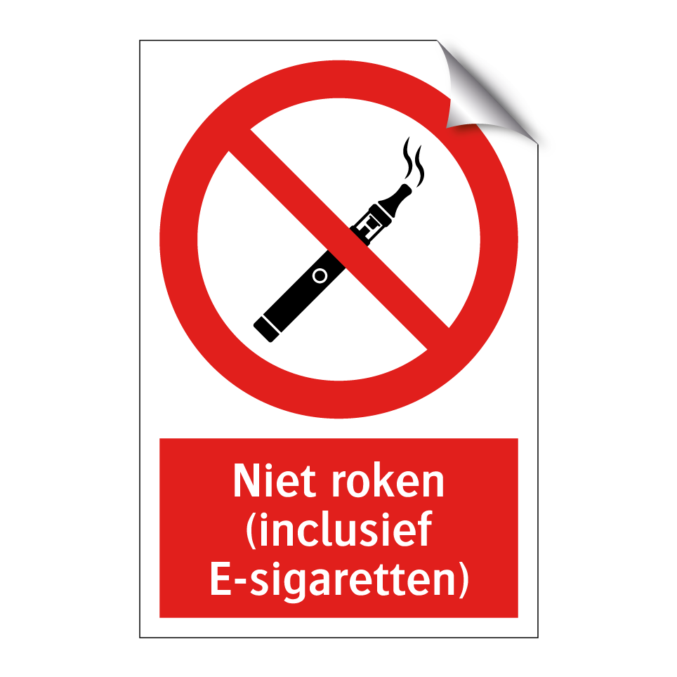 Verbodsbord met de tekst Niet roken (inclusief E-sigaretten)