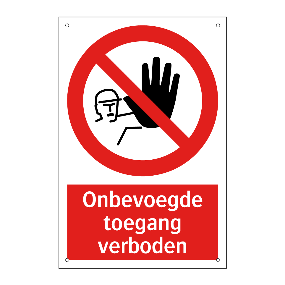 Verbodsbord met de tekst Onbevoegde toegang verboden
