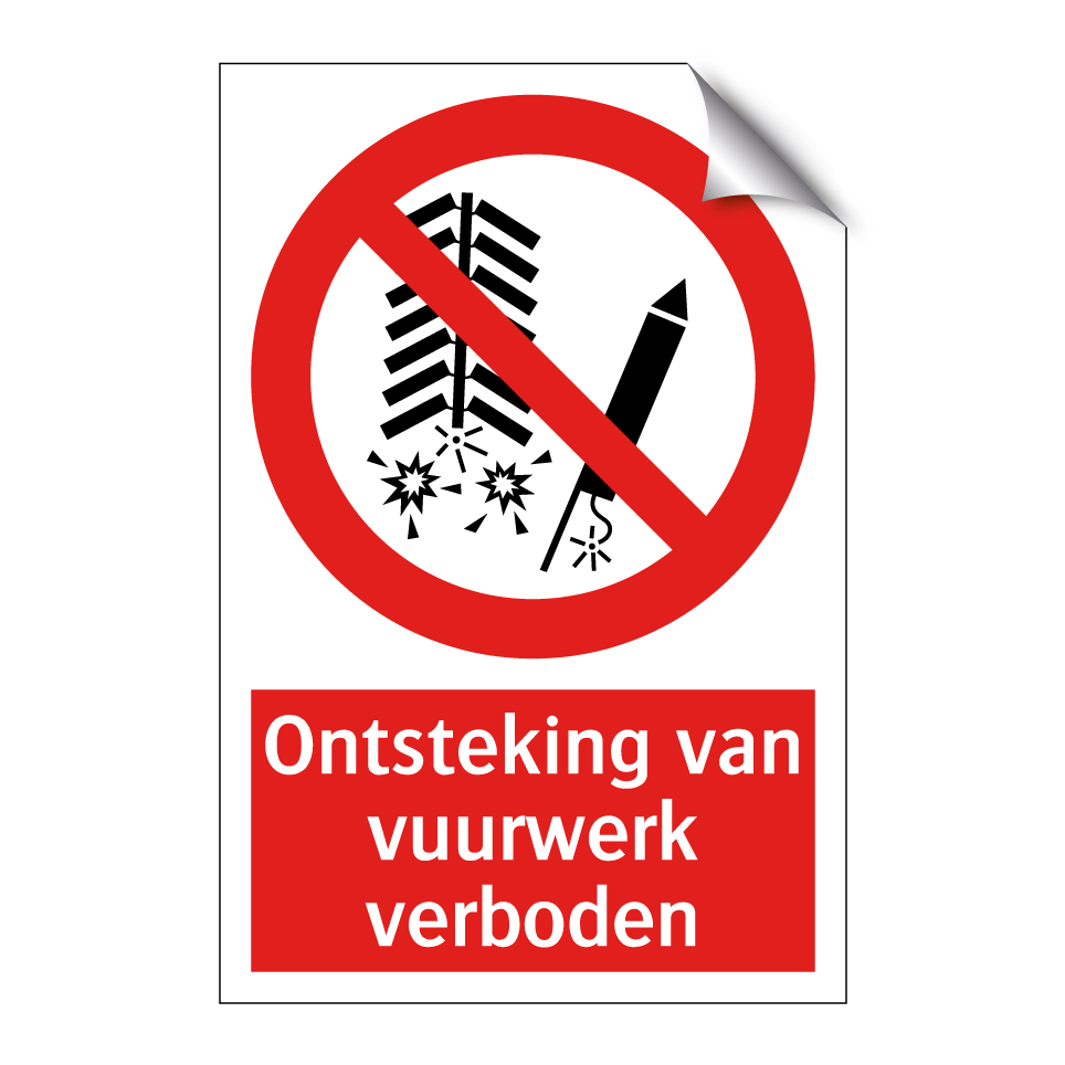 Verbodsbord met de tekst Ontsteking van vuurwerk verboden