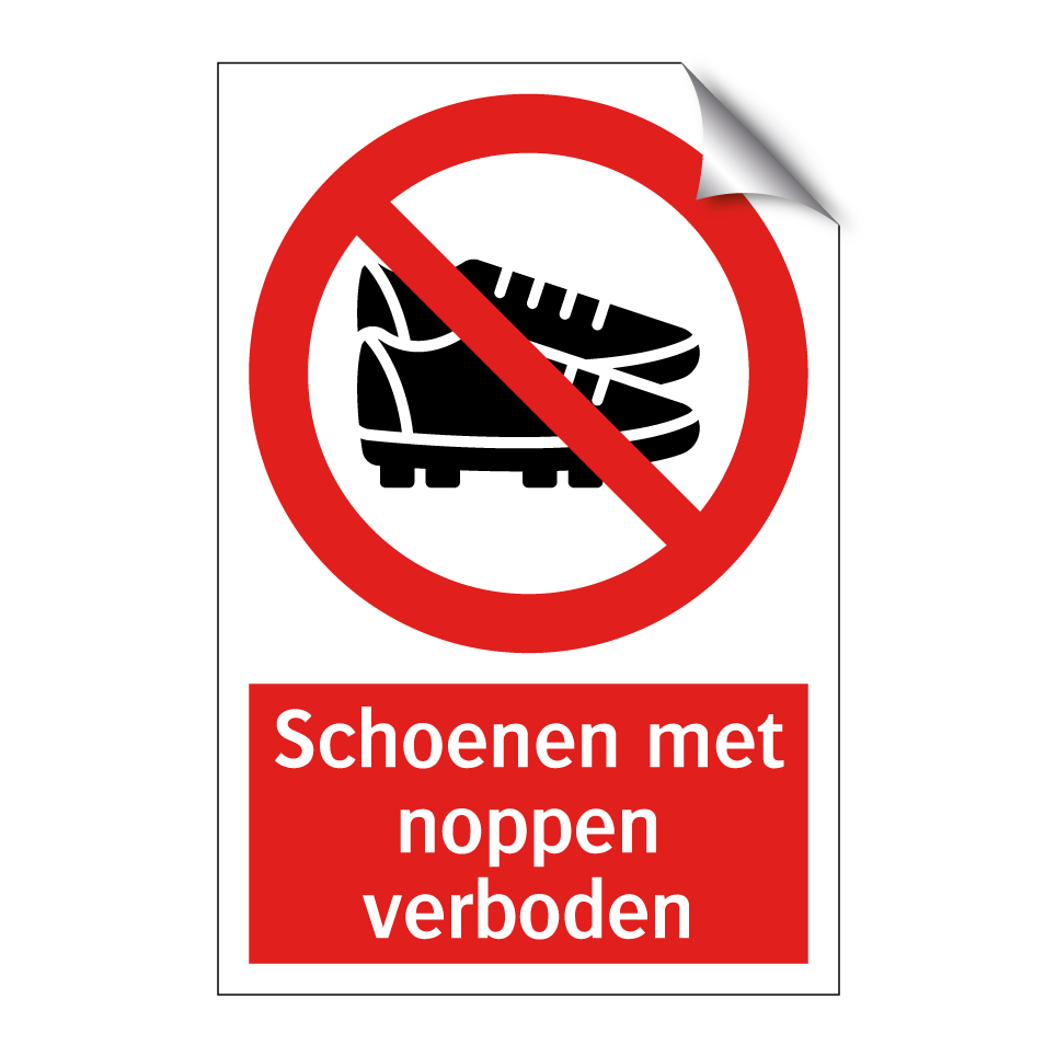 Verbodsbord met de tekst Schoenen met noppen verboden