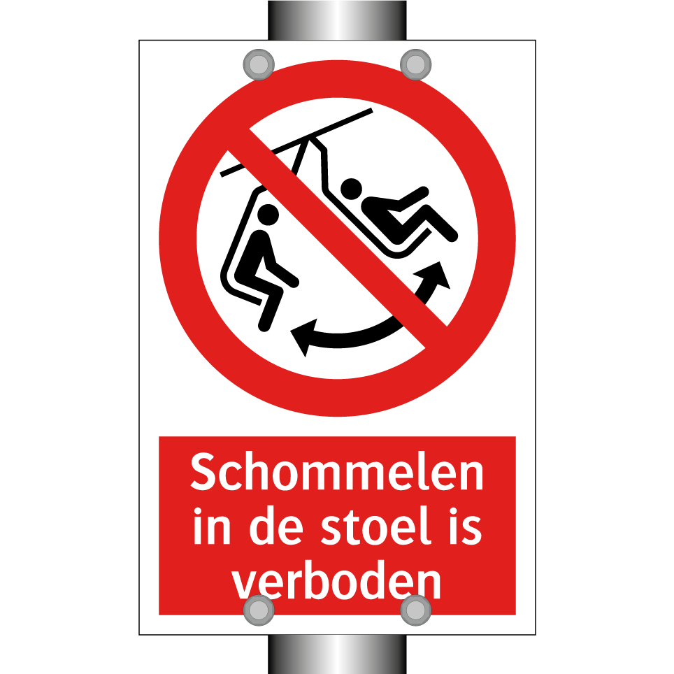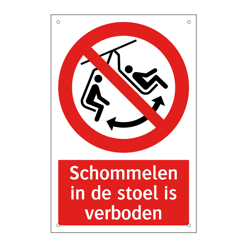 Verbodsbord met de tekst Schommelen in de stoel is verboden