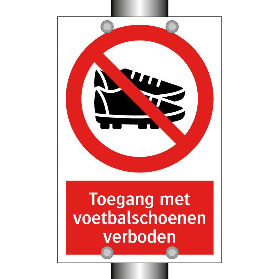 Verbodsbord met de tekst Toegang met voetbalschoenen verboden