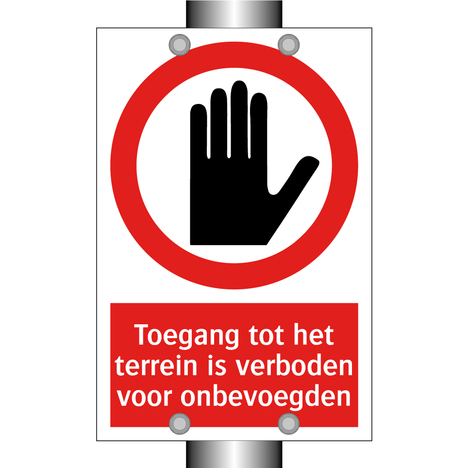 Verbodsbord met de tekst Toegang tot het terrein is verboden voor onbevoegden