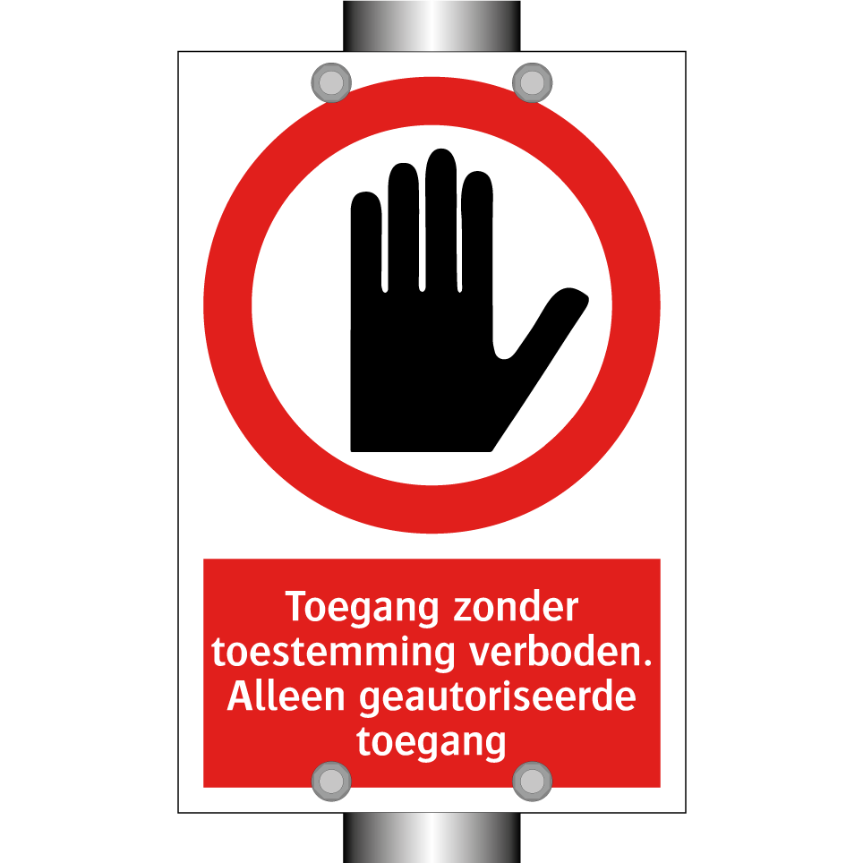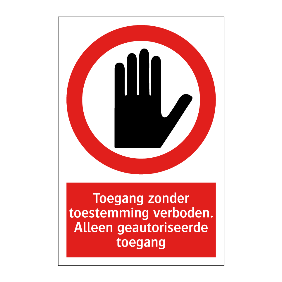 Verbodsbord met de tekst Toegang zonder toestemming verboden. Alleen geautoriseerde toegang