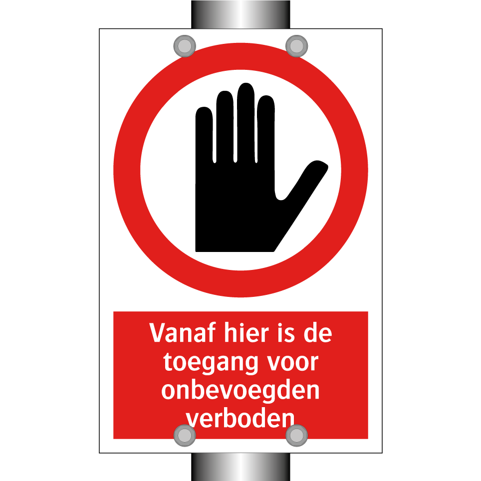 Verbodsbord met de tekst Vanaf hier is de toegang voor onbevoegden verboden