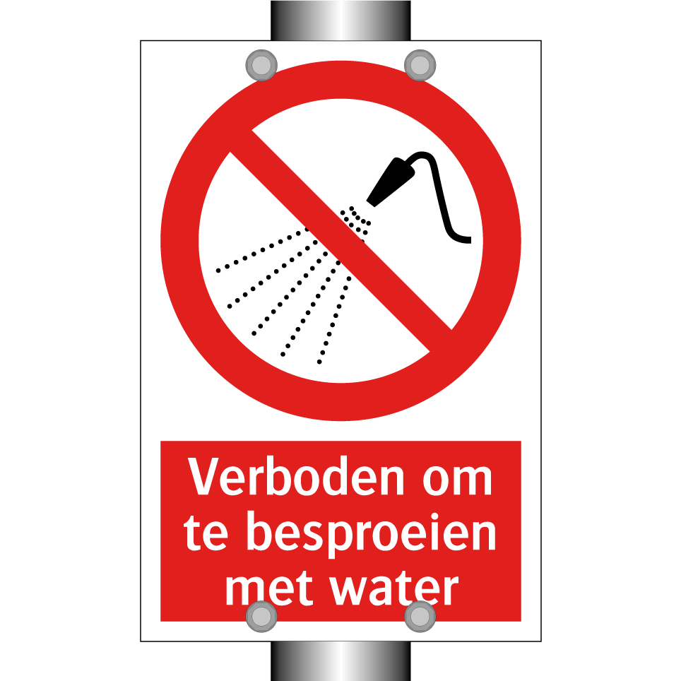 Verbodsbord met de tekst Verboden om te besproeien met water
