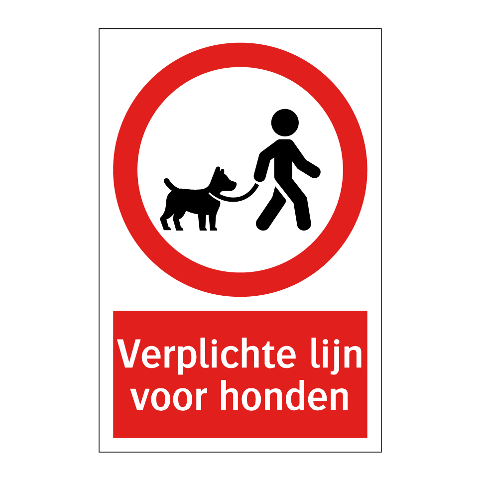 Verbodsbord met de tekst Verplichte lijn voor honden