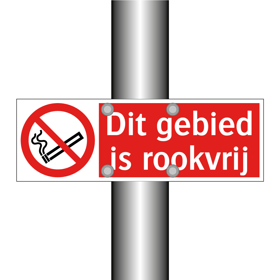 Verbodsbord met de tekst Dit gebied is rookvrij