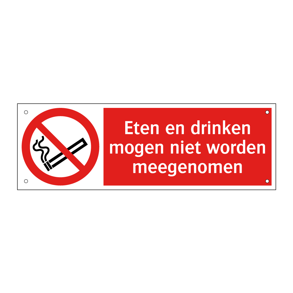 Verbodsbord met de tekst Eten en drinken mogen niet worden meegenomen